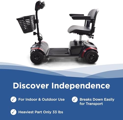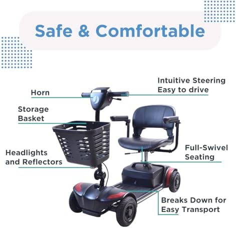 - Go Farther With Confidence – Battery-powered mobility scooter offers up to 12.4 miles per charge (up to 9.9 miles of typical use), ideal for shopping, dining, and sightseeing.
